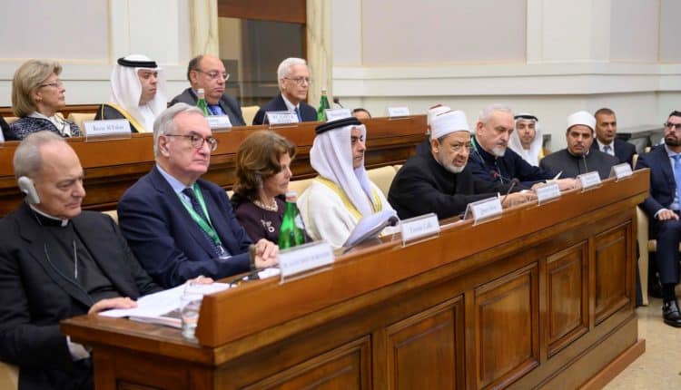 Встреча на высшем уровне организована под патронажем Его Высочества шейха Мохаммеда бен Заида Аль Нахайяна, наследного принца Абу-Даби и заместителя Верховного главнокомандующего Вооруженными силами ОАЭ, в присутствии Его Святейшества Папы Франциска, главы католической церкви, и Его Высокопреосвященства Доктор Ахмад эль-Тайеб, Великого Имама Аль Азхар Аль Шариф.